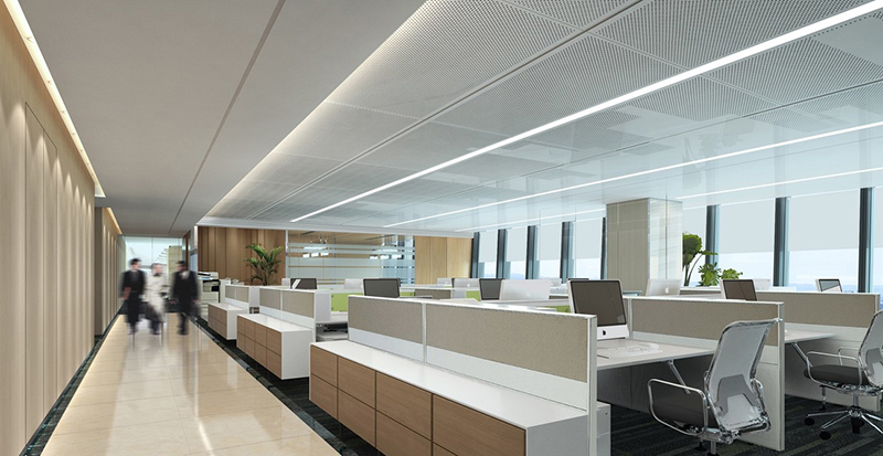 設計理念:本設計案例以現(xiàn)代風格為主,整體空間體現(xiàn)實力、干練、活力及信心的理念,提取現(xiàn)代風格的線條精髓和企業(yè)色調(diào)相結(jié)合,貫穿于在整個辦公空間,使之體現(xiàn)出我們的辦公空間簡潔大方、美觀實用。大堂與過道地面用的是石材鋪地、辦公區(qū)、洽談室、培訓室深素色環(huán)保地毯以及玻璃的應用,使空間干凈利落、簡練,讓空間在滿足通透與遮蔽功能的同時給人以柔軟親和的視覺觸感,同時不失檔次感、正式感,使整個辦公室給人一種穩(wěn)重感、可靠的感覺。