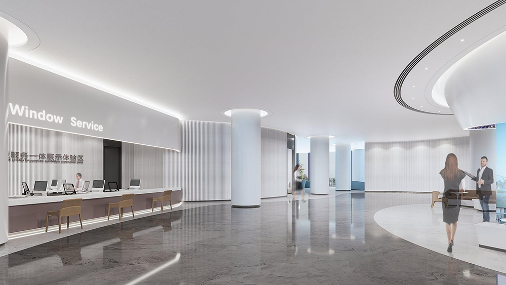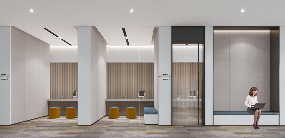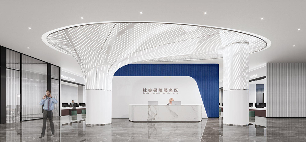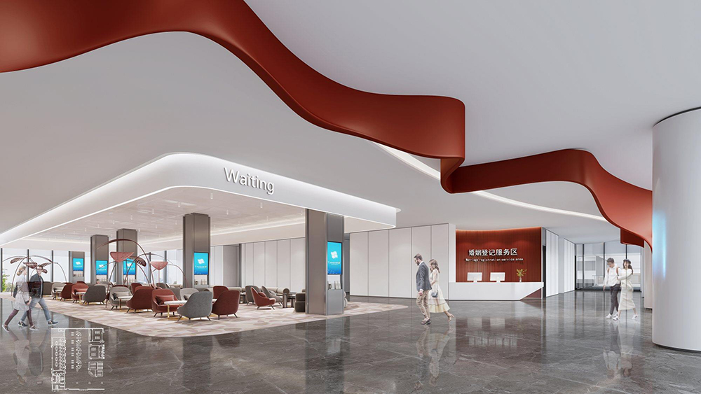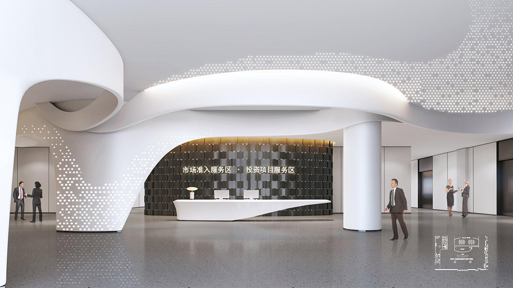 設計理念:本服務中心提供包括民生服務區、社會保障服務區、婚姻登記服務區、警務服務區、不動產服務區、公積金及水電服務區、辦稅服務區、公共資源交易中心、圖審中心、投資項目服務區、市場準入服務區、政策服務一體展示體驗區等一站式服務。