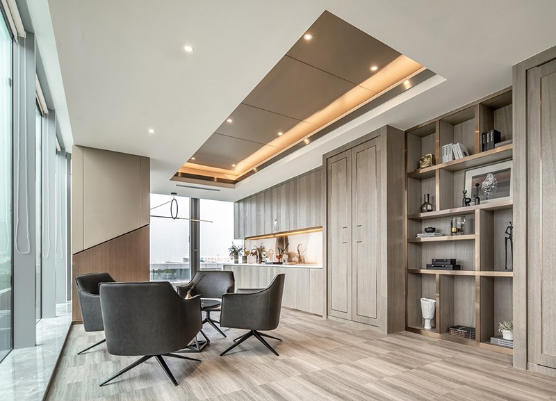 辦公空間的整體動線布局,以人為本。運用暖系色調融合啡色作為點綴,質感豐富,對比分明,體現了大都會的時代感。大氣及細致并存,將建筑與藝術結合,展現剛柔并重,美觀與實用兼備的辦公空間。