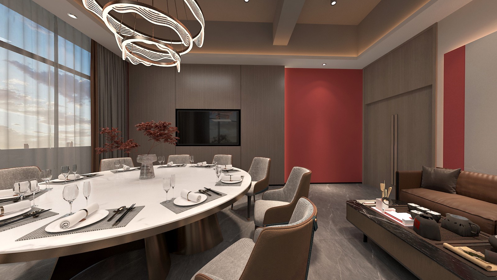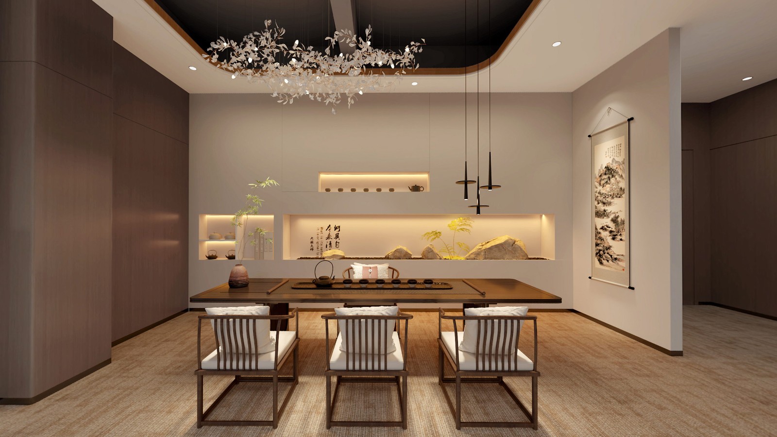 辦公區(qū)域延續(xù)采用了新中式的設(shè)計(jì)風(fēng)格,簡(jiǎn)化了繁雜的裝飾,加入了少量的幾何元素進(jìn)行點(diǎn)綴,為古典文藝的辦公空間融入了商務(wù)元素,同時(shí)也滿足了現(xiàn)代辦公的功能性和審美需求,創(chuàng)造出一個(gè)既典雅又高效的工作環(huán)境。