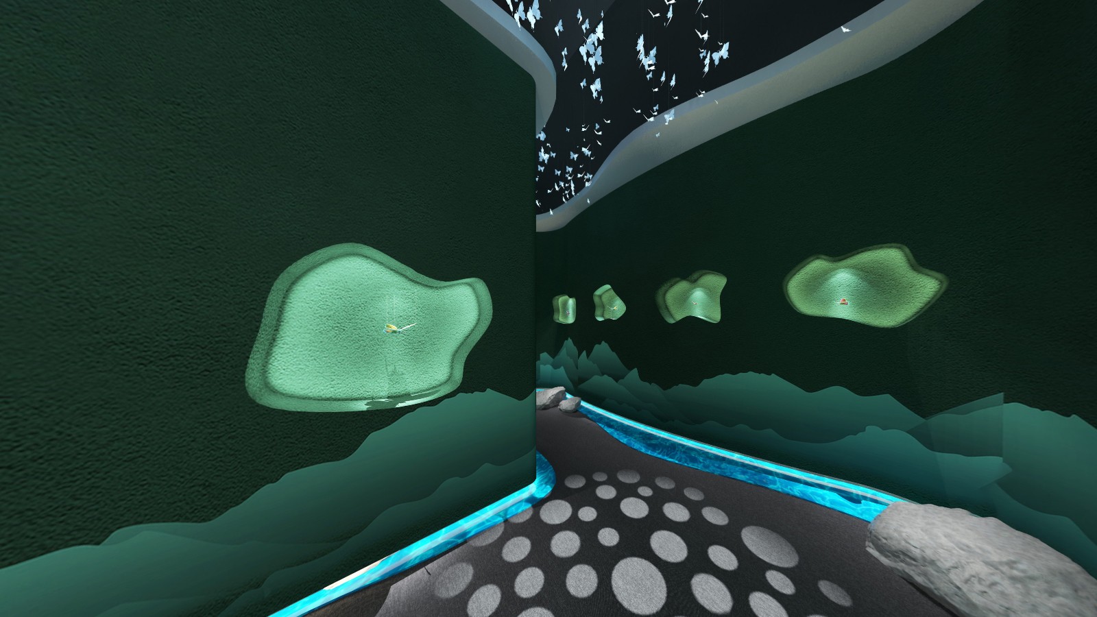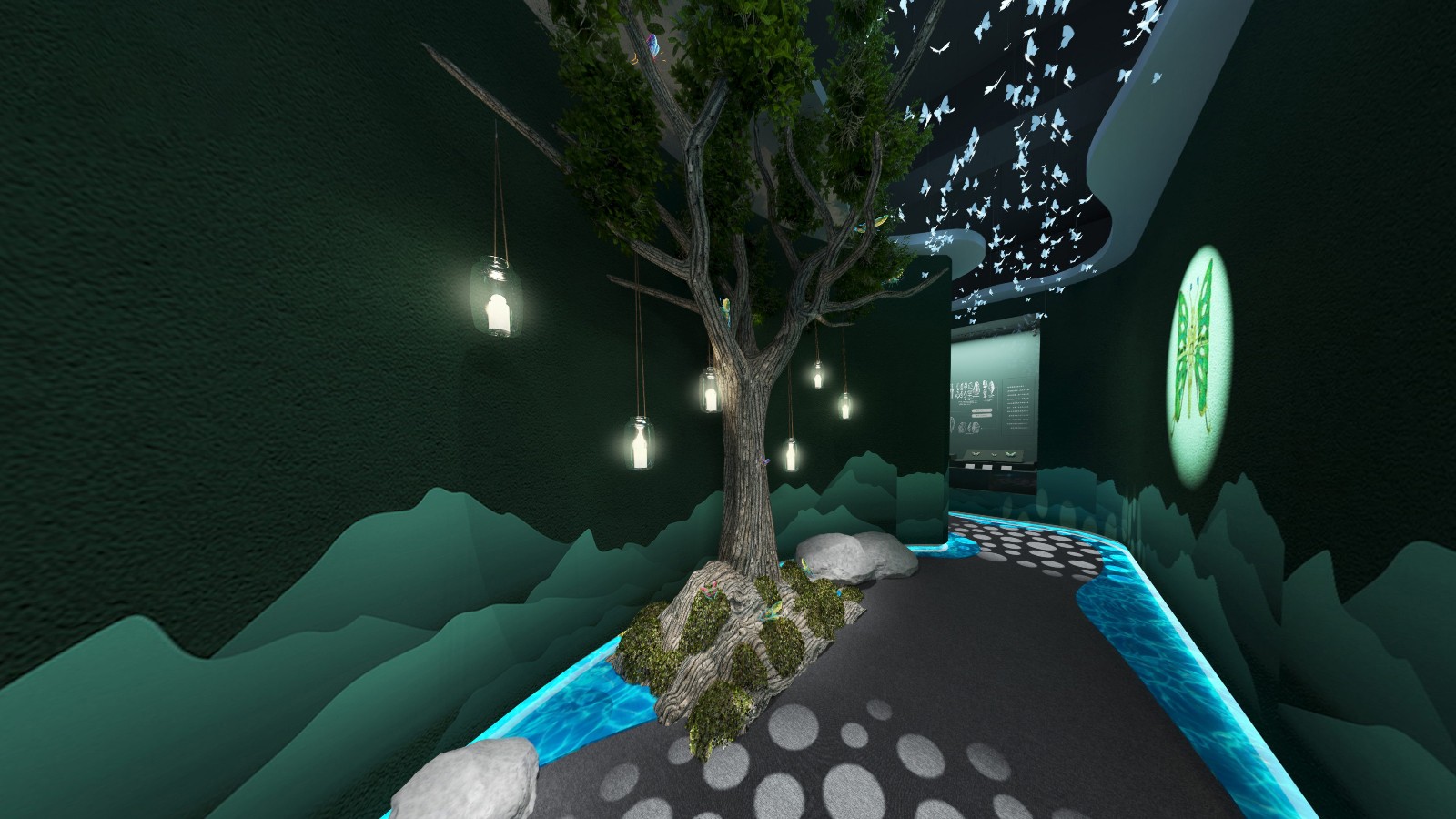 公共區(qū)域借鑒中國(guó)山水畫(huà)的意境,采用了假山、古樹(shù)、原石等造物裝飾,將山水美景移進(jìn)室內(nèi),營(yíng)造出與自然和諧共生的氛圍.為進(jìn)入展廳做出了鋪墊。
