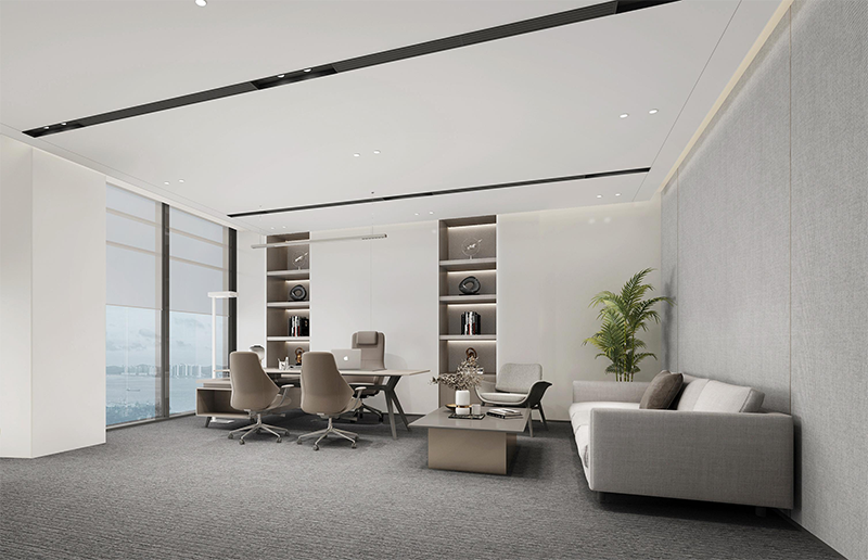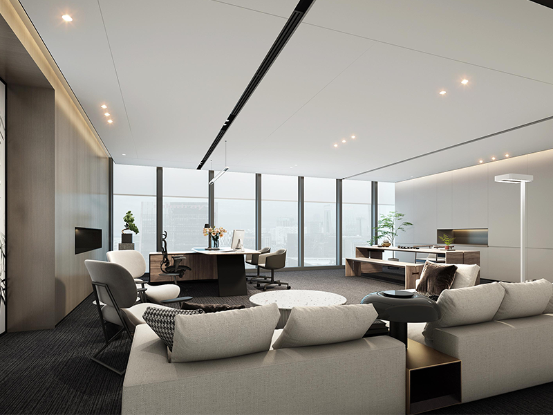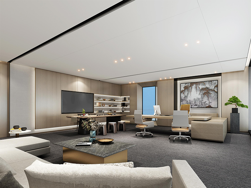 現代輕奢風的集團辦公室辦公室設計理念強調簡約而不失奢華,設計方案采用了沉穩大氣的色彩搭配、木飾面的點綴讓空間更具有活力。精致家具和藝術裝飾,展現出稀土產業的特色和企業的品牌形象。空間布局注重開放與私密的平衡,以提升工作效率和員工滿意度,同時彰顯公司的品牌價值和時代感。