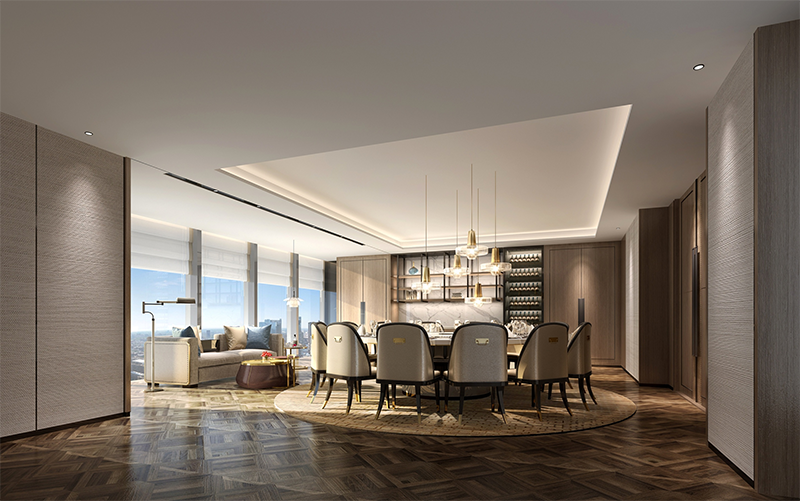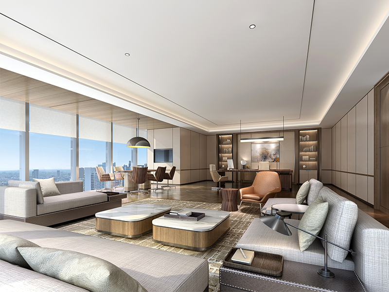 本方案的設計強調傳統文化與現代審美的結合,既保留中式的典雅與韻味,又融入現代設計的簡約與時尚,通過巧妙的布局和隔斷,使用中式屏風、工藝隔斷、簡約博古架等,增強空間的層次感和流動性,使空間更加靈動通透。且多種形式的接待空間,滿足不同形式的商務接待場景。
