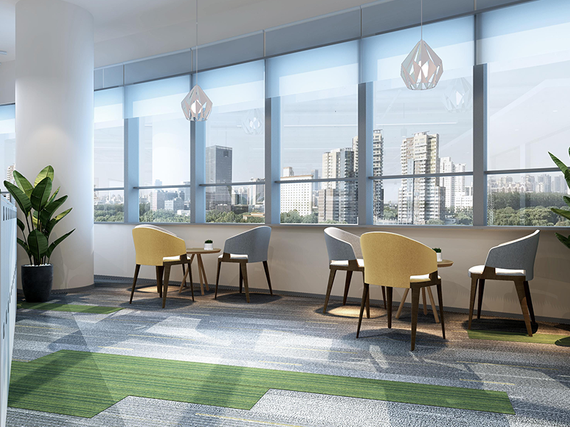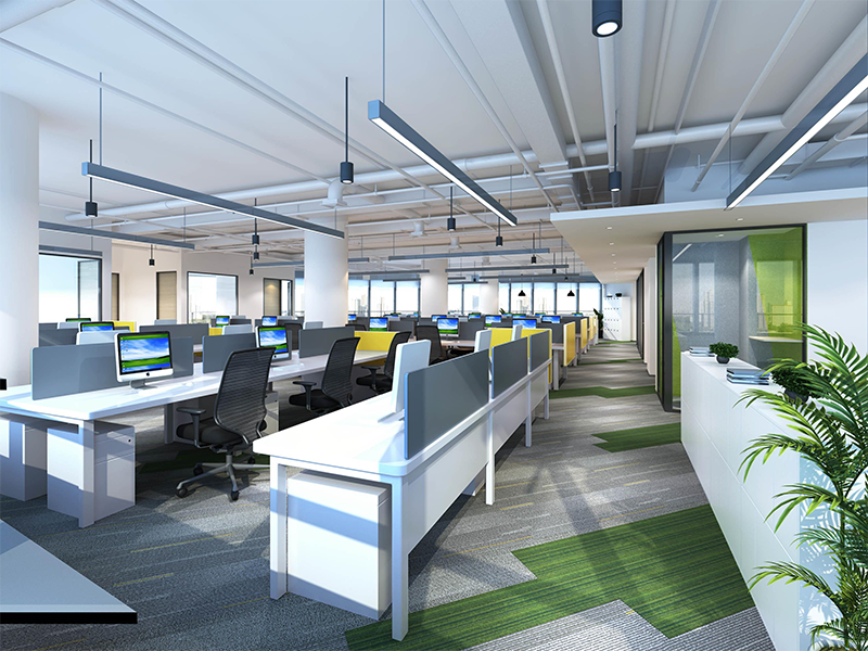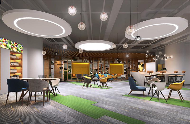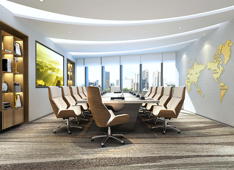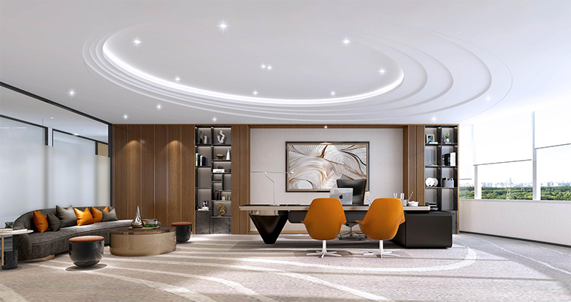 整體設計方案巧妙地運用線條元素,通過在各個功能區域融入不同節奏的流線型裝飾,營造出獨特的空間氛圍。展現出現代化辦公風格的同時,增強了空間的動態感,區分了各個功能區,并且巧妙融合綠色裝飾,強調了公司先進綠色的品牌理念,使得整個辦公室既統一又富有變化。展現出現代設計的美學與實用性。