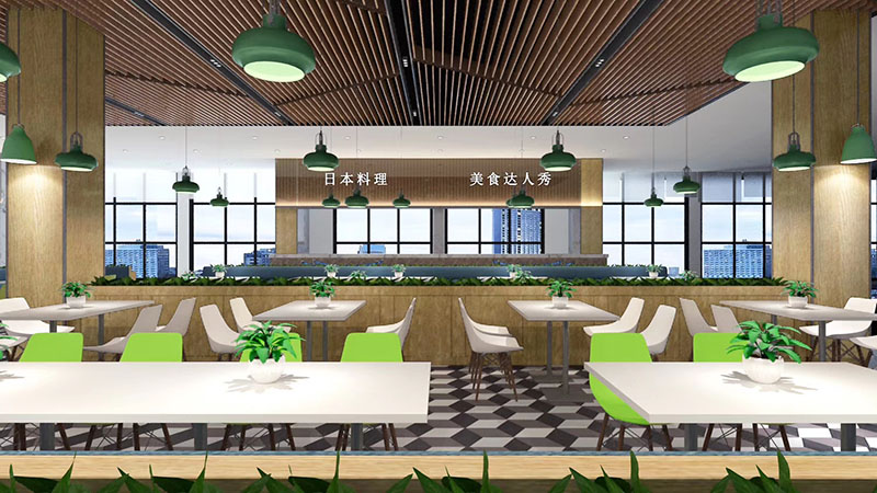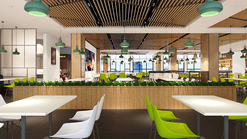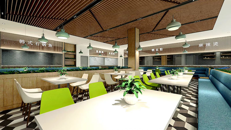 設(shè)計(jì)理念:將飲食文化與現(xiàn)代快餐空間設(shè)計(jì)相結(jié)合,打造富有內(nèi)涵的互動(dòng)式空間。充分體現(xiàn)空間尺度,優(yōu)化食堂環(huán)境品質(zhì),營(yíng)造健康、安全、舒適的就餐環(huán)境。