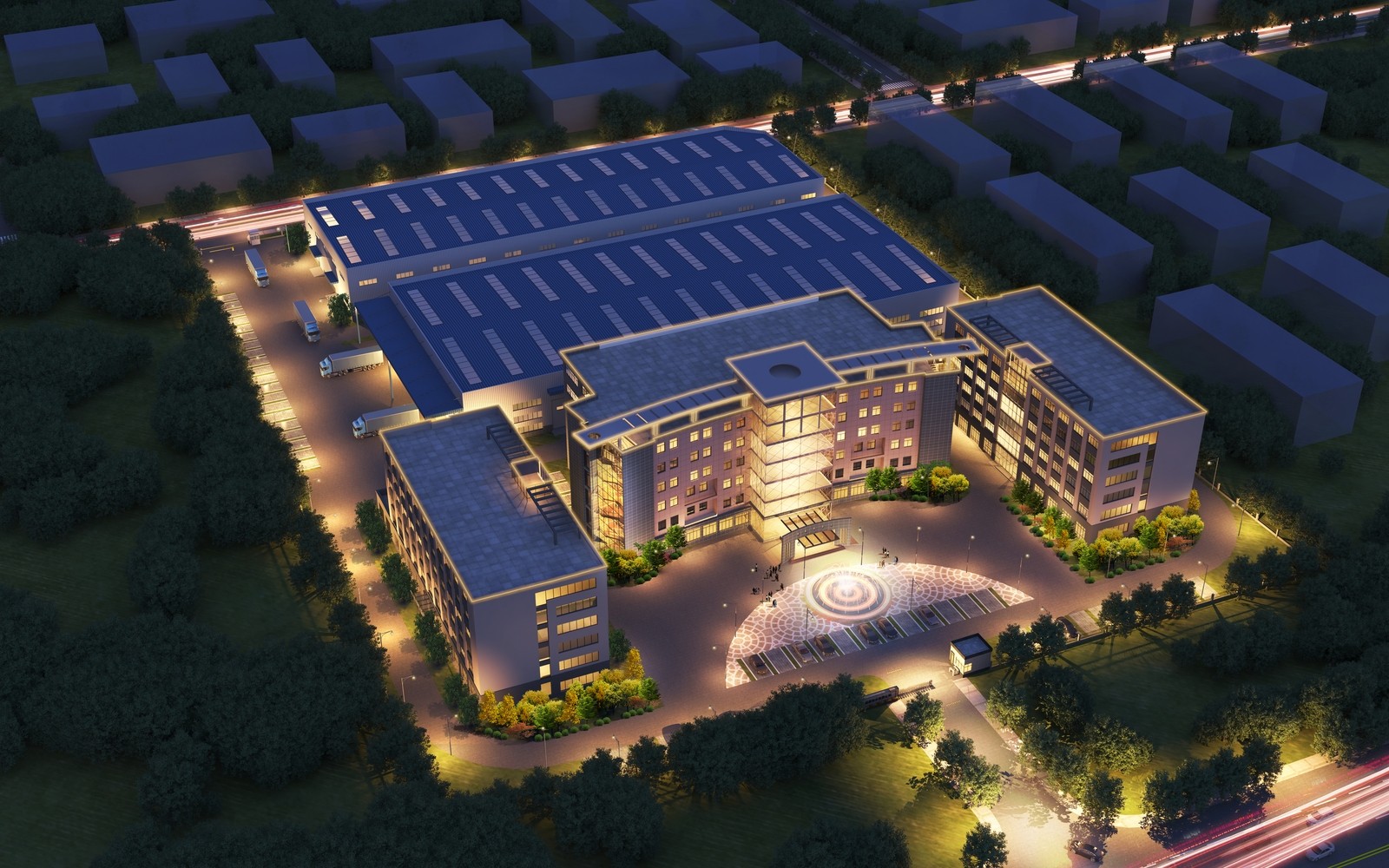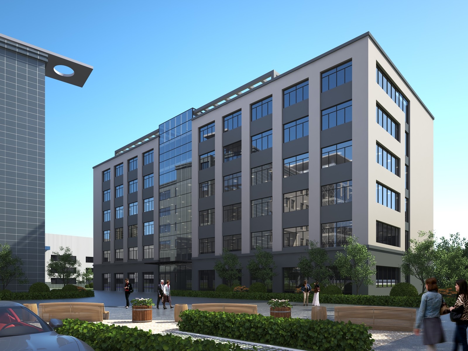 設計理念:廠房單體樓棟呈院落式布局,共同圍合出內部怡人的園區環境,在多個不同主題的庭院中,人們可以感受到建筑體量的層次感和空間變化,同時也可以享受到自然光線和景觀的美好,為員工的交流和互動帶來更多流通性和便利性,創造盡可能多的城市性開放綠色空間。