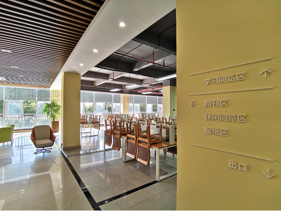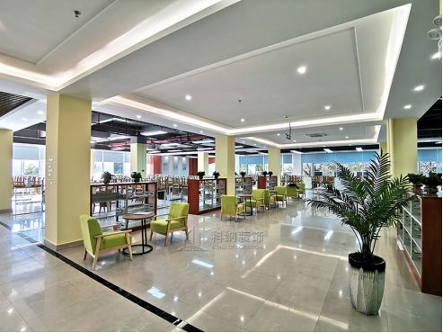 此次項目是廣東科技學院南城校區圖書館閱覽室裝修工程。整個圖書館閱讀空間主色調定為白色、木色、淡綠色,還原清新自然的氛圍,喚醒青春歲月與校園生活氣息。