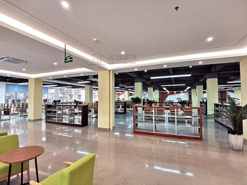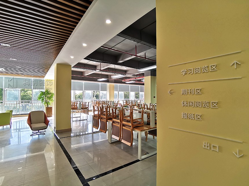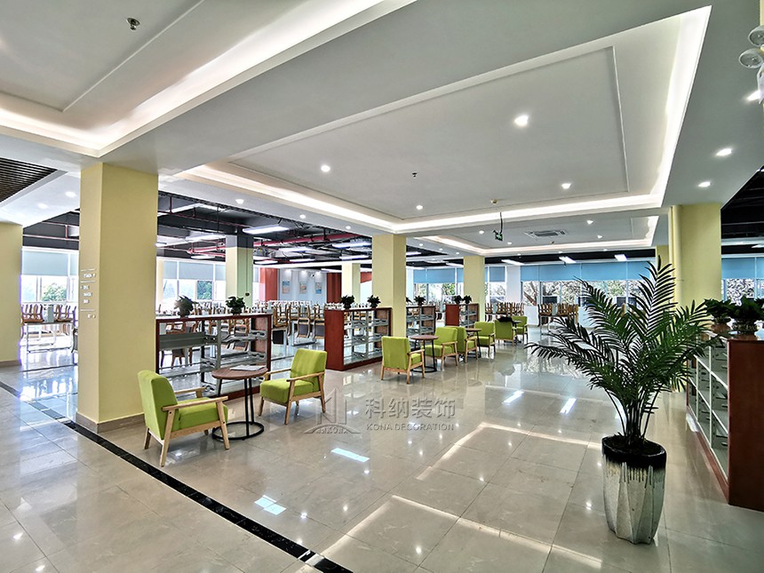 圖書館裝修,搭配是主要的一點,總的來說,空間的面積也有一定的要求,要在色彩統一的基礎上還要求色調淡雅的統一,在顏色的使用上,避免眩光色彩的產生,避免強制性引導視線的因素分散讀者的注意力,同時也降低了噪音,更好的為讀者營造了舒適和諧的氛圍。
