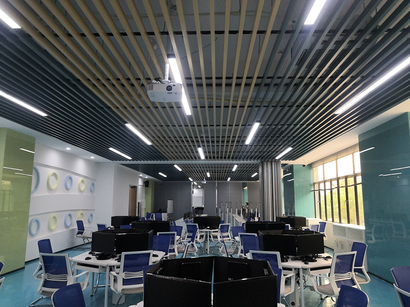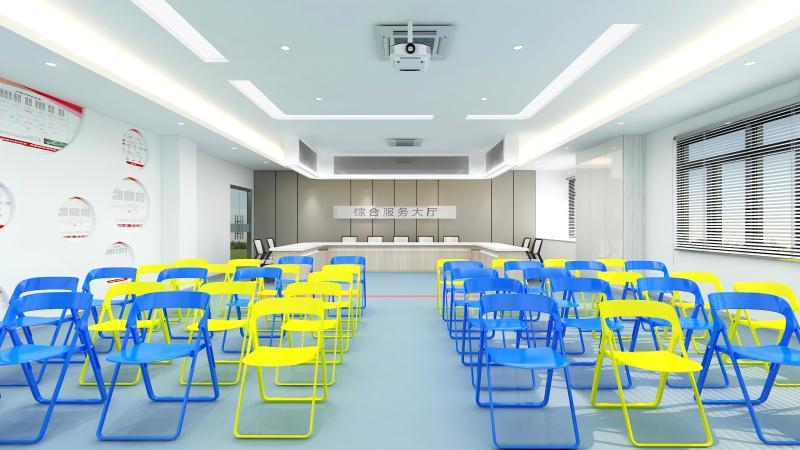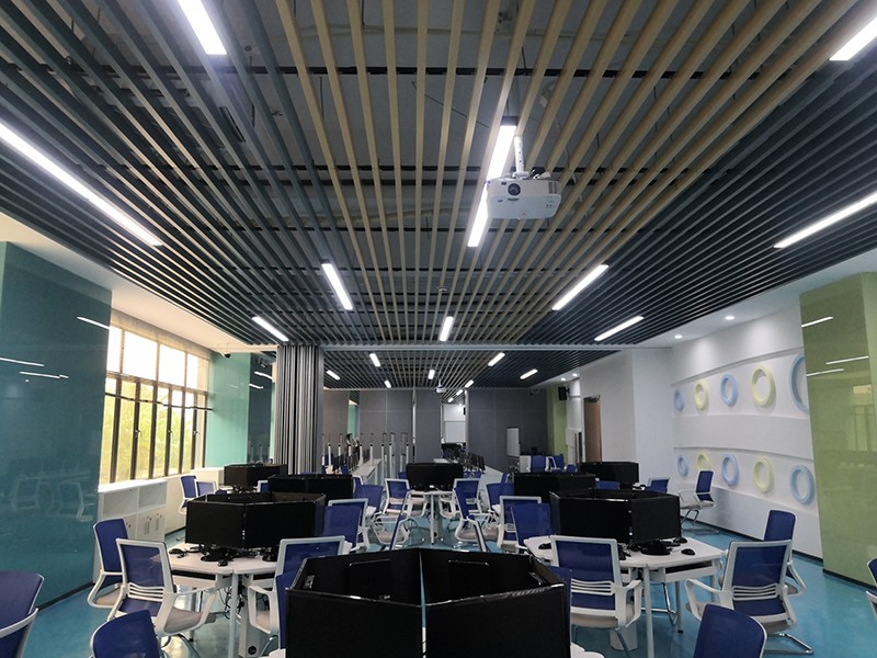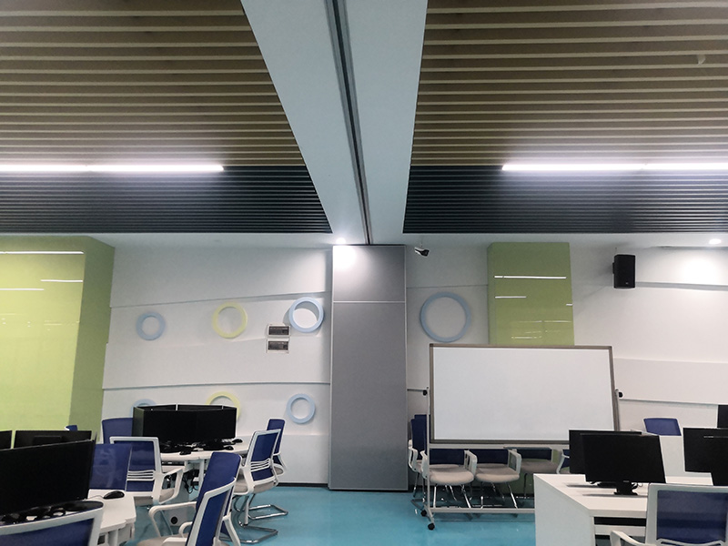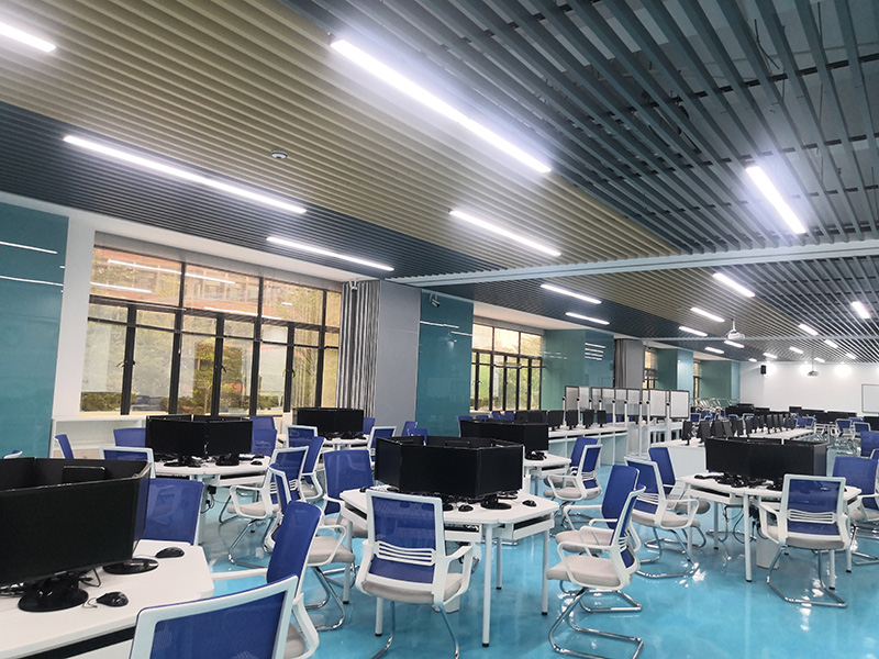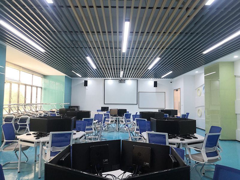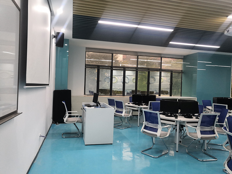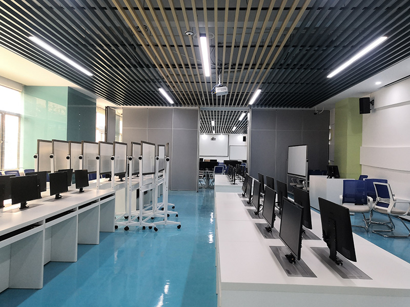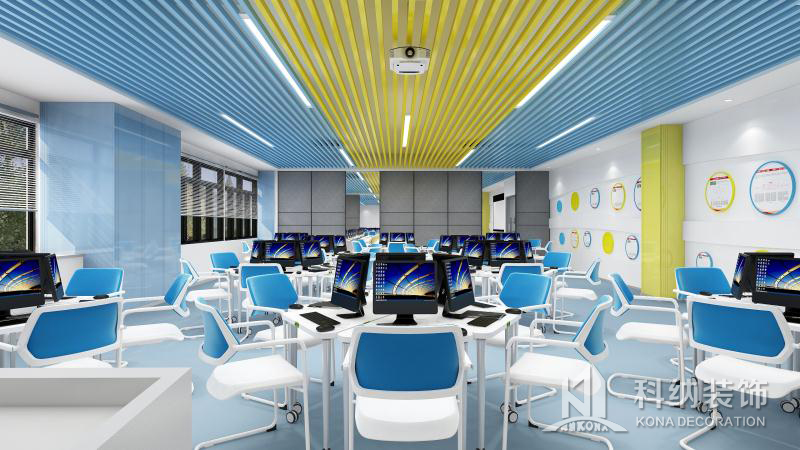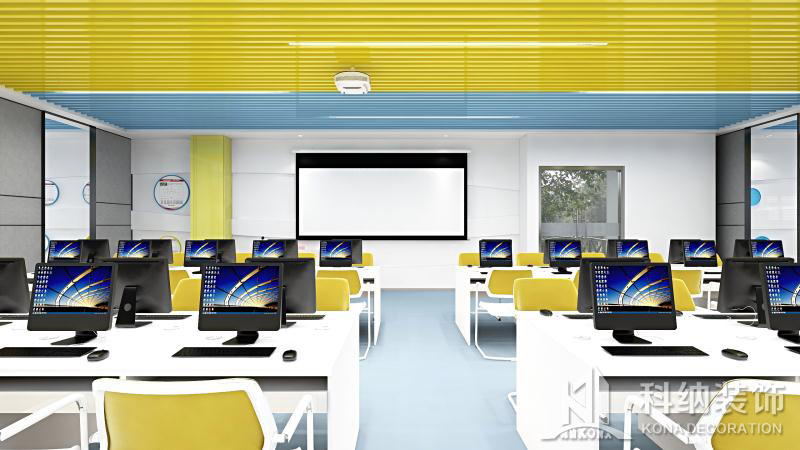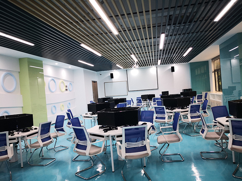 設計理念:清遠校區(qū)經(jīng)營虛擬仿真中心裝修工程,教室的色調(diào)整體把控在藍色系上,寬敞的空間一眼望去變讓人感到十分的舒適,簡單明了,色彩上溫暖的淺色系與白色搭配也顯得非常的干凈,幾個不同教室用可移動屏風隔斷,可變換多種風格。